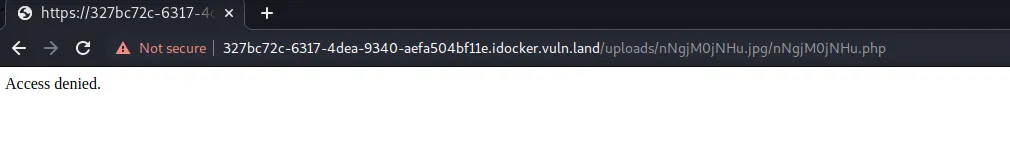 So requesting an existing file under /uploads/existingfile.jpg followed by /anything.php where the latter has to END with .php results in a 403 Access denied.