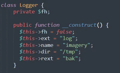 __constructfunction. These variables are used in the code to access files and two of those variables are used as extensions. Now,.logand.bakdon’t seem that interesting for webshells, but this will still be important later on. - There is the